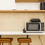 An equipped kitchenette with a microwave oven, a refrigerator, and glassware is available in this apartment, along with coffee/tea making machines. The apartment is in close proximity to Shuttle bus station.